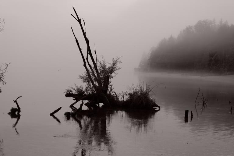 Keywords: water wood lake back light wood in the water nature idyllic mood mirroring natural lake waters