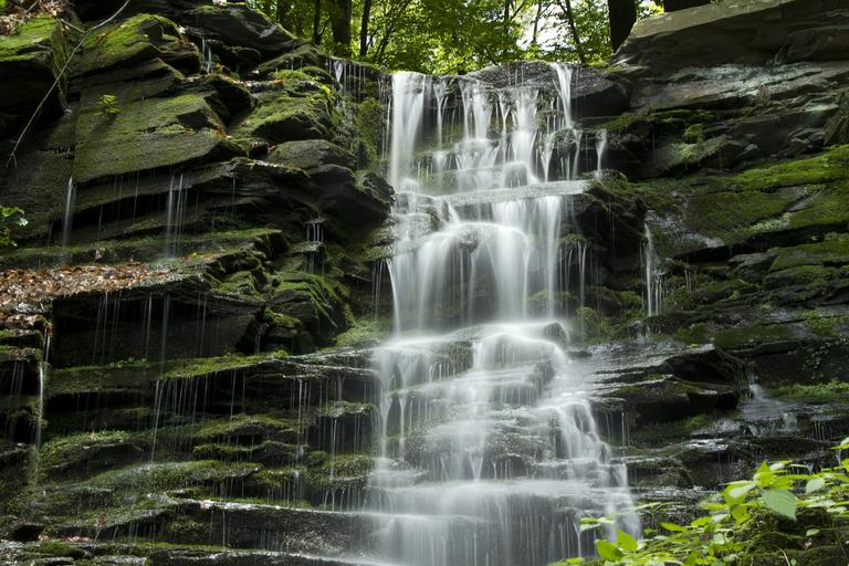 Keywords: waterfall cascade water stream natural rock flowing flow green scenery motion wet fresh mountain peaceful outdoors