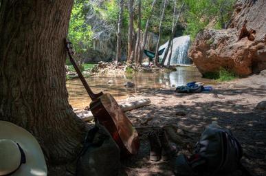 Keywords: arizona camp verde campverde coconino national forest coconinonationalforest forest service forestservice fossil creek fossilcreek k20d national forest nationalforest pentax k20d pentaxk20d red rock ranger district redrockrangerdistrict tonto national forest tontonationalforest usfs verde valley verdevalley waterfall trail waterfalltrail aeb aebhdr aebshot canyon creek desert forest guitar hiking outdoors riparian spring springtime trail water waterfall united states unitedstates outdoor This large, natural waterfall on Fossil Creek is the destination of an easy, one mile hike on Waterfall Trail. A large, deep pool at the base of the fall is a popular swimming hole. Fossil Creek produces 20,000 gallons of water a minute from a series of springs at the bottom of a 1,600 foot deep canyon. This permanent water source has created a stunningly beautiful, green riparian zone rich with flora and fauna at the bottom of this arid canyon in Arizona's high desert. Travertine deposits encase whatever happens to fall into the streambed, forming the fossils for which the area is named. These deposits create deep pools along the length of the creek, providing opportunities to find more secluded swimming holes than the popular pool at the waterfall. Fossil Creek is one of two "Wild and Scenic" rivers in Arizona. This designation was achieved when the Irving power plant was decommissioned, and removal of flume and dam on the creek allowed the creek to flow free. Increasing popularity has led to the Coconino and Tonto National Forests to implement a parking permit reservation system in 2016. Reserved parking permits allow visitors to have a parking spot available in their chosen parking lot. Many visitors drive two or three hours to get to the creek. The final descent to the creek at the bottom of a canyon is on an extremely rough, rocky jeep road. In prior years, the area would often be closed to entry when it reached capacity, and potential visitors would be turned away after the long, difficult drive. Photo by Deborah Lee Soltesz, May 12, 2016. For trail and recreation information, see Fossil Creek, Fossil Springs Wilderness, and the Coconino National Forest. This large, natural waterfall on Fossil Creek is the destination of an easy, one mile hike on Waterfall Trail. A large, deep pool at the base of the fall is a popular swimming hole. Fossil Creek produces 20,000 gallons of water a minute from a series of springs at the bottom of a 1,600 foot deep canyon. This permanent water source has created a stunningly beautiful, green riparian zone rich with flora and fauna at the bottom of this arid canyon in Arizona's high desert. Travertine deposits encase whatever happens to fall into the streambed, forming the fossils for which the area is named. These deposits create deep pools along the length of the creek, providing opportunities to find more secluded swimming holes than the popular pool at the waterfall. Fossil Creek is one of two "Wild and Scenic" rivers in Arizona. This designation was achieved when the Irving power plant was decommissioned, and removal of flume and dam on the creek allowed the creek to flow free. Increasing popularity has led to the Coconino and Tonto National Forests to implement a parking permit reservation system in 2016. Reserved parking permits allow visitors to have a parking spot available in their chosen parking lot. Many visitors drive two or three hours to get to the creek. The final descent to the creek at the bottom of a canyon is on an extremely rough, rocky jeep road. In prior years, the area would often be closed to entry when it reached capacity, and potential visitors would be turned away after the long, difficult drive. Photo by Deborah Lee Soltesz, May 12, 2016. For trail and recreation information, see Fossil Creek, Fossil Springs Wilderness, and the Coconino National Forest. |