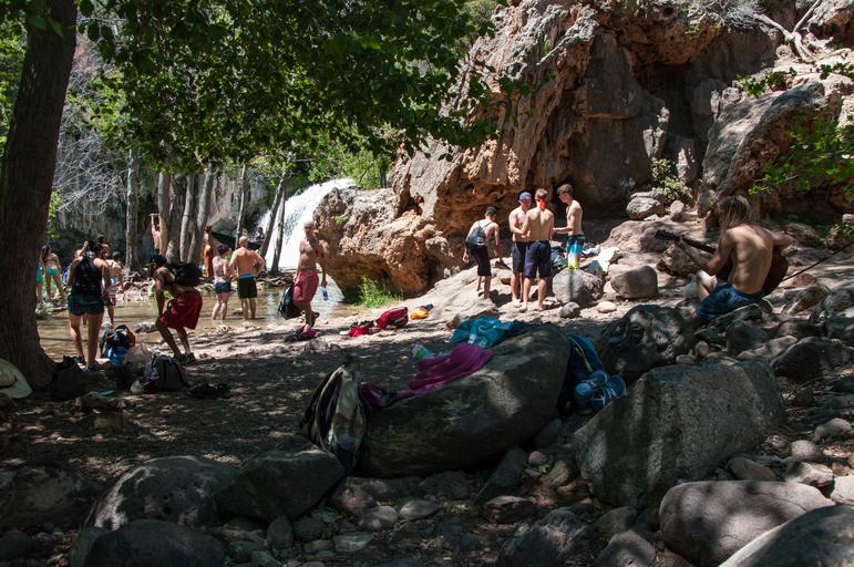 Keywords: arizona camp verde campverde coconino national forest coconinonationalforest forest service forestservice fossil creek fossilcreek k20d national forest nationalforest pentax k20d pentaxk20d red rock ranger district redrockrangerdistrict tonto national forest tontonationalforest usfs verde valley verdevalley waterfall trail waterfalltrail canyon creek desert forest guitar hiking outdoors riparian spring springtime trail water waterfall united states unitedstates outdoor This large, natural waterfall on Fossil Creek is the destination of an easy, one mile hike on Waterfall Trail. A large, deep pool at the base of the fall is a popular swimming hole. Fossil Creek produces 20,000 gallons of water a minute from a series of springs at the bottom of a 1,600 foot deep canyon. This permanent water source has created a stunningly beautiful, green riparian zone rich with flora and fauna at the bottom of this arid canyon in Arizona's high desert. Travertine deposits encase whatever happens to fall into the streambed, forming the fossils for which the area is named. These deposits create deep pools along the length of the creek, providing opportunities to find more secluded swimming holes than the popular pool at the waterfall. Fossil Creek is one of two "Wild and Scenic" rivers in Arizona. This designation was achieved when the Irving power plant was decommissioned, and removal of flume and dam on the creek allowed the creek to flow free. Increasing popularity has led to the Coconino and Tonto National Forests to implement a parking permit reservation system in 2016. Reserved parking permits allow visitors to have a parking spot available in their chosen parking lot. Many visitors drive two or three hours to get to the creek. The final descent to the creek at the bottom of a canyon is on an extremely rough, rocky jeep road. In prior years, the area would often be closed to entry when it reached capacity, and potential visitors would be turned away after the long, difficult drive. Photo by Deborah Lee Soltesz, May 12, 2016. For trail and recreation information, see Fossil Creek, Fossil Springs Wilderness, and the Coconino National Forest. This large, natural waterfall on Fossil Creek is the destination of an easy, one mile hike on Waterfall Trail. A large, deep pool at the base of the fall is a popular swimming hole. Fossil Creek produces 20,000 gallons of water a minute from a series of springs at the bottom of a 1,600 foot deep canyon. This permanent water source has created a stunningly beautiful, green riparian zone rich with flora and fauna at the bottom of this arid canyon in Arizona's high desert. Travertine deposits encase whatever happens to fall into the streambed, forming the fossils for which the area is named. These deposits create deep pools along the length of the creek, providing opportunities to find more secluded swimming holes than the popular pool at the waterfall. Fossil Creek is one of two "Wild and Scenic" rivers in Arizona. This designation was achieved when the Irving power plant was decommissioned, and removal of flume and dam on the creek allowed the creek to flow free. Increasing popularity has led to the Coconino and Tonto National Forests to implement a parking permit reservation system in 2016. Reserved parking permits allow visitors to have a parking spot available in their chosen parking lot. Many visitors drive two or three hours to get to the creek. The final descent to the creek at the bottom of a canyon is on an extremely rough, rocky jeep road. In prior years, the area would often be closed to entry when it reached capacity, and potential visitors would be turned away after the long, difficult drive. Photo by Deborah Lee Soltesz, May 12, 2016. For trail and recreation information, see Fossil Creek, Fossil Springs Wilderness, and the Coconino National Forest. |