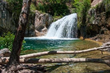 Keywords: arizona camp verde campverde coconino national forest coconinonationalforest forest service forestservice fossil creek fossilcreek k20d national forest nationalforest pentax k20d pentaxk20d red rock ranger district redrockrangerdistrict tonto national forest tontonationalforest usfs verde valley verdevalley waterfall trail waterfalltrail canyon creek desert forest hiking outdoors riparian spring springtime trail water waterfall united states unitedstates landscape outdoor stream This large, natural waterfall on Fossil Creek is the destination of an easy, one mile hike on Waterfall Trail. A large, deep pool at the base of the fall is a popular swimming hole. Fossil Creek produces 20,000 gallons of water a minute from a series of springs at the bottom of a 1,600 foot deep canyon. This permanent water source has created a stunningly beautiful, green riparian zone rich with flora and fauna at the bottom of this arid canyon in Arizona's high desert. Travertine deposits encase whatever happens to fall into the streambed, forming the fossils for which the area is named. These deposits create deep pools along the length of the creek, providing opportunities to find more secluded swimming holes than the popular pool at the waterfall. Fossil Creek is one of two "Wild and Scenic" rivers in Arizona. This designation was achieved when the Irving power plant was decommissioned, and removal of flume and dam on the creek allowed the creek to flow free. Increasing popularity has led to the Coconino and Tonto National Forests to implement a parking permit reservation system in 2016. Reserved parking permits allow visitors to have a parking spot available in their chosen parking lot. Many visitors drive two or three hours to get to the creek. The final descent to the creek at the bottom of a canyon is on an extremely rough, rocky jeep road. In prior years, the area would often be closed to entry when it reached capacity, and potential visitors would be turned away after the long, difficult drive. Photo by Deborah Lee Soltesz, May 12, 2016. For trail and recreation information, see Fossil Creek, Fossil Springs Wilderness, and the Coconino National Forest. This large, natural waterfall on Fossil Creek is the destination of an easy, one mile hike on Waterfall Trail. A large, deep pool at the base of the fall is a popular swimming hole. Fossil Creek produces 20,000 gallons of water a minute from a series of springs at the bottom of a 1,600 foot deep canyon. This permanent water source has created a stunningly beautiful, green riparian zone rich with flora and fauna at the bottom of this arid canyon in Arizona's high desert. Travertine deposits encase whatever happens to fall into the streambed, forming the fossils for which the area is named. These deposits create deep pools along the length of the creek, providing opportunities to find more secluded swimming holes than the popular pool at the waterfall. Fossil Creek is one of two "Wild and Scenic" rivers in Arizona. This designation was achieved when the Irving power plant was decommissioned, and removal of flume and dam on the creek allowed the creek to flow free. Increasing popularity has led to the Coconino and Tonto National Forests to implement a parking permit reservation system in 2016. Reserved parking permits allow visitors to have a parking spot available in their chosen parking lot. Many visitors drive two or three hours to get to the creek. The final descent to the creek at the bottom of a canyon is on an extremely rough, rocky jeep road. In prior years, the area would often be closed to entry when it reached capacity, and potential visitors would be turned away after the long, difficult drive. Photo by Deborah Lee Soltesz, May 12, 2016. For trail and recreation information, see Fossil Creek, Fossil Springs Wilderness, and the Coconino National Forest. |