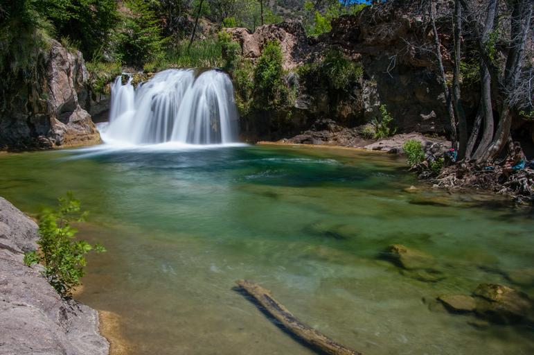 Keywords: arizona camp verde campverde coconino national forest coconinonationalforest forest service forestservice fossil creek fossilcreek k20d national forest nationalforest pentax k20d pentaxk20d red rock ranger district redrockrangerdistrict tonto national forest tontonationalforest usfs verde valley verdevalley waterfall trail waterfalltrail canyon creek desert forest hiking ndfilter outdoors riparian spring springtime trail water waterfall united states unitedstates outdoor landscape watercourse This large, natural waterfall on Fossil Creek is the destination of an easy, one mile hike on Waterfall Trail. A large, deep pool at the base of the fall is a popular swimming hole. Fossil Creek produces 20,000 gallons of water a minute from a series of springs at the bottom of a 1,600 foot deep canyon. This permanent water source has created a stunningly beautiful, green riparian zone rich with flora and fauna at the bottom of this arid canyon in Arizona's high desert. Travertine deposits encase whatever happens to fall into the streambed, forming the fossils for which the area is named. These deposits create deep pools along the length of the creek, providing opportunities to find more secluded swimming holes than the popular pool at the waterfall. Fossil Creek is one of two "Wild and Scenic" rivers in Arizona. This designation was achieved when the Irving power plant was decommissioned, and removal of flume and dam on the creek allowed the creek to flow free. Increasing popularity has led to the Coconino and Tonto National Forests to implement a parking permit reservation system in 2016. Reserved parking permits allow visitors to have a parking spot available in their chosen parking lot. Many visitors drive two or three hours to get to the creek. The final descent to the creek at the bottom of a canyon is on an extremely rough, rocky jeep road. In prior years, the area would often be closed to entry when it reached capacity, and potential visitors would be turned away after the long, difficult drive. Photo by Deborah Lee Soltesz, May 12, 2016. For trail and recreation information, see Fossil Creek, Fossil Springs Wilderness, and the Coconino National Forest. This large, natural waterfall on Fossil Creek is the destination of an easy, one mile hike on Waterfall Trail. A large, deep pool at the base of the fall is a popular swimming hole. Fossil Creek produces 20,000 gallons of water a minute from a series of springs at the bottom of a 1,600 foot deep canyon. This permanent water source has created a stunningly beautiful, green riparian zone rich with flora and fauna at the bottom of this arid canyon in Arizona's high desert. Travertine deposits encase whatever happens to fall into the streambed, forming the fossils for which the area is named. These deposits create deep pools along the length of the creek, providing opportunities to find more secluded swimming holes than the popular pool at the waterfall. Fossil Creek is one of two "Wild and Scenic" rivers in Arizona. This designation was achieved when the Irving power plant was decommissioned, and removal of flume and dam on the creek allowed the creek to flow free. Increasing popularity has led to the Coconino and Tonto National Forests to implement a parking permit reservation system in 2016. Reserved parking permits allow visitors to have a parking spot available in their chosen parking lot. Many visitors drive two or three hours to get to the creek. The final descent to the creek at the bottom of a canyon is on an extremely rough, rocky jeep road. In prior years, the area would often be closed to entry when it reached capacity, and potential visitors would be turned away after the long, difficult drive. Photo by Deborah Lee Soltesz, May 12, 2016. For trail and recreation information, see Fossil Creek, Fossil Springs Wilderness, and the Coconino National Forest. |
