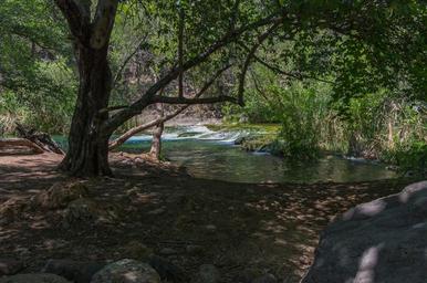 Keywords: arizona coconino national forest coconinonationalforest forest service forestservice fossil creek fossilcreek k20d national forest nationalforest pentax k20d pentaxk20d red rock ranger district redrockrangerdistrict tonto national forest tontonationalforest usfs waterfall trail waterfalltrail canyon desert forest hiking outdoors spring springtime trail camp verde campverde united states unitedstates outdoor tree plant A large, natural waterfall on Fossil Creek is the destination of an easy, one mile hike on Waterfall Trail. A large, deep pool at the base of the fall is a popular swimming hole. Fossil Creek produces 20,000 gallons of water a minute from a series of springs at the bottom of a 1,600 foot deep canyon. This permanent water source has created a stunningly beautiful, green riparian zone rich with flora and fauna at the bottom of this arid canyon in Arizona's high desert. Travertine deposits encase whatever happens to fall into the streambed, forming the fossils for which the area is named. These deposits create deep pools along the length of the creek, providing opportunities to find more secluded swimming holes than the popular pool at the waterfall. Fossil Creek is one of two "Wild and Scenic" rivers in Arizona. This designation was achieved when the Irving power plant was decommissioned, and removal of flume and dam on the creek allowed the creek to flow free. Increasing popularity has led to the Coconino and Tonto National Forests to implement a parking permit reservation system in 2016. Reserved parking permits allow visitors to have a parking spot available in their chosen parking lot. Many visitors drive two or three hours to get to the creek. The final descent to the creek at the bottom of a canyon is on an extremely rough, rocky jeep road. In prior years, the area would often be closed to entry when it reached capacity, and potential visitors would be turned away after the long, difficult drive. Photo by Deborah Lee Soltesz, May 4, 2016. For trail and recreation information, see Fossil Creek, Fossil Springs Wilderness, and the Coconino National Forest. A large, natural waterfall on Fossil Creek is the destination of an easy, one mile hike on Waterfall Trail. A large, deep pool at the base of the fall is a popular swimming hole. Fossil Creek produces 20,000 gallons of water a minute from a series of springs at the bottom of a 1,600 foot deep canyon. This permanent water source has created a stunningly beautiful, green riparian zone rich with flora and fauna at the bottom of this arid canyon in Arizona's high desert. Travertine deposits encase whatever happens to fall into the streambed, forming the fossils for which the area is named. These deposits create deep pools along the length of the creek, providing opportunities to find more secluded swimming holes than the popular pool at the waterfall. Fossil Creek is one of two "Wild and Scenic" rivers in Arizona. This designation was achieved when the Irving power plant was decommissioned, and removal of flume and dam on the creek allowed the creek to flow free. Increasing popularity has led to the Coconino and Tonto National Forests to implement a parking permit reservation system in 2016. Reserved parking permits allow visitors to have a parking spot available in their chosen parking lot. Many visitors drive two or three hours to get to the creek. The final descent to the creek at the bottom of a canyon is on an extremely rough, rocky jeep road. In prior years, the area would often be closed to entry when it reached capacity, and potential visitors would be turned away after the long, difficult drive. Photo by Deborah Lee Soltesz, May 4, 2016. For trail and recreation information, see Fossil Creek, Fossil Springs Wilderness, and the Coconino National Forest.