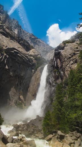 Keywords: waterfall yosemite nature falls water california national usa america forest tree natural mountain trail stone falling mist sight united states