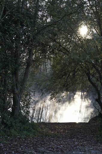 Keywords: waterpolo landscape river water trees nature fall path mist fog