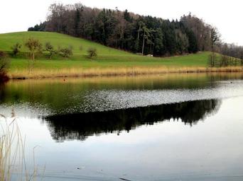 Keywords: waters pond hauptwil hauptwil pond mirroring bank reed meadow forest thurgau switzerland