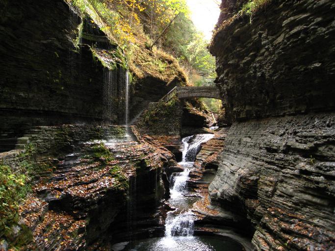 Keywords: Watkins Glen Bridge.JPG en The gorge at Watkins Glen State Park New York Picture was taken with a Canon Power Shot SD850 camera Own BrianAdler 2008-10-17 Watkins Glen State Park