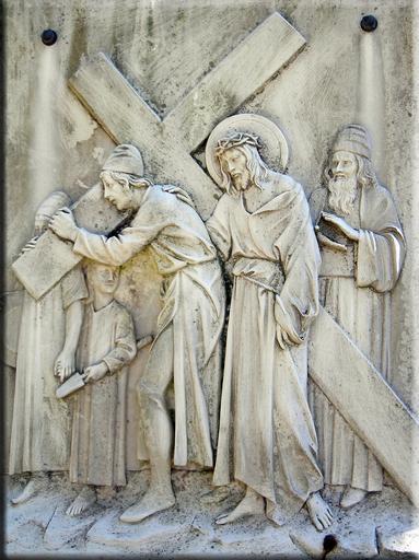 Keywords: way of the cross christian church easter procession stone chiseled crucifixion plate sicily suffering christ