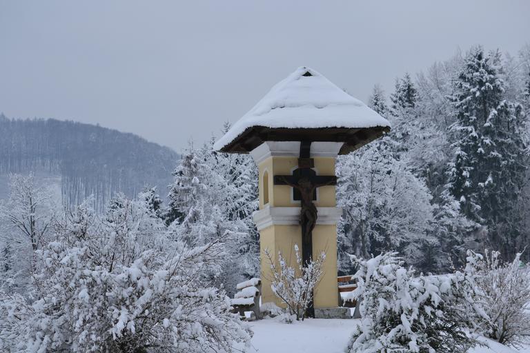 Keywords: wayside cross carinthia winter snow grutschen austria