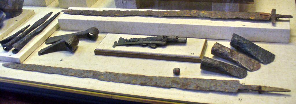 Keywords: Weapons midOka 3-7c.jpg ru П едметы воо ужения населения С едней Оки III-VII века Ко аблино аконечники копий мечи топо ы нож в ножнах 2011-07-04 own Лапоть File Spears midOka 3-7c jpg cc-zero Uploaded with UploadWizard Weapon in Moscow State Historical Museum