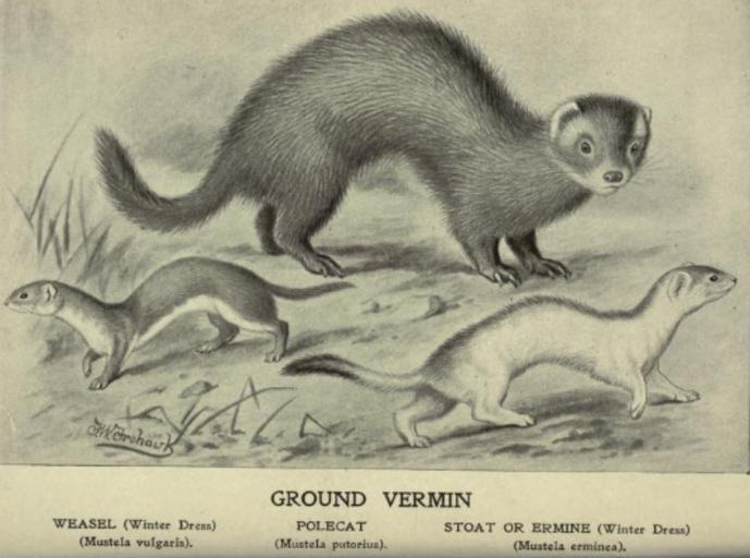 Keywords: Weasel, stoat & fitch.png Least weasel stoat and European polecat Practical game-preserving a complete guide to the rearing and preservation of both winged and ground game and the destruction of vermin 1906 Carnegie W PD-old Mustela putorius in art Weasels in art Stoats in art |