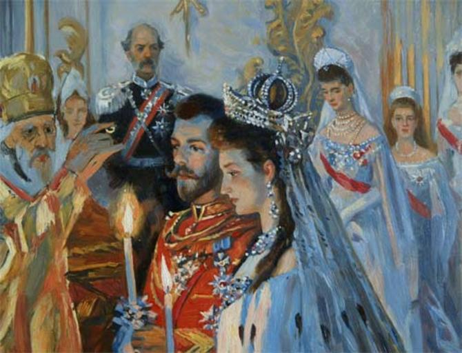 | Keywords: Wedding of Nicholas II and Alexandra Feodorovna by Laurits Tuxen (1895, Hermitage) crop 01.jpg Princess Alix of Hesse-Darmstadt which took place at the Chapel of the Winter Palace St Petersburg on 14/26 November 1894 Behind the bride the Dowager Empress Maria Fyodorovna Detail from Wedding of Nicholas II and Alexandra Feodorovna by Laurits Tuxen 1895 Hermitage jpg http //www artsstudio com/reproductions/paintings/tuksen_wedding-14 jpg dead link of the original 1895 anonymous copy after Laurits Tuxen's 1853-1927 Wedding of Nicholas II and Alix of Hesse 1895 detail Wedding of Nicholas II and Alexandra Feodorovna by Laurits Tuxen 1895 Hermitage jpg PD-old-auto-1923 1927 Wedding of Nicholas II of Russia and Alexandra Feodorovna Alix of Hesse Maria Fyodorovna Dagmar of Denmark in documentary paintings Ž Russian royalty by Laurits Tuxen Orthodox clothing Wedding ceremonies in paintings Christian wedding in art People with candles in art Ermine clothing in art Imperial wedding crown of Russia Portrait paintings of women wearing tiaras diadems |