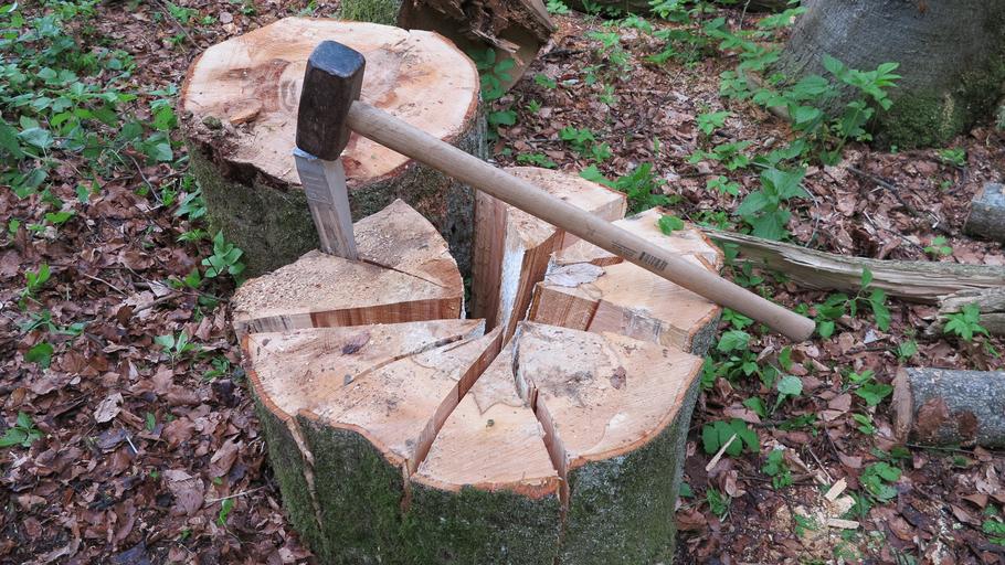 Keywords: wedge wood chop tree segments kreissekmente hammer split split wood firewood forest work work
