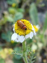 Keywords: weevil beetle diptera orange beetle daisy pollen