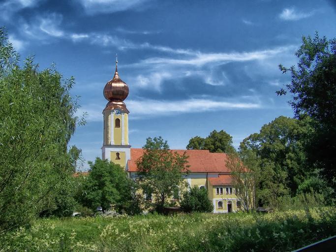 Keywords: weihmichl germany church architecture trees nature outside sky clouds hdr countryside summer spring