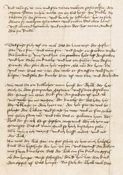 | Keywords: Weisses Buch von Sarnen 447.jpg en p 447 fol ccxi r of the White Book of Sarnen the earliest record of the legend of William Tell Text p 447 Das fügt sich vf ein mal das der landvögt der gesler gan vre für/ vnd namm für/ vnd stagt ein stecken vnder die linden ze vure/ vnd leit ein huot vf den stecken vnd hat da by ein knecht/ vnd tett ein gebött/ wer da für giengi/ der sölti dem huot nygen als were der herr da vnd wer das nit täti den wollt er straffen/ vnd swar buossen/ vnd solti der knecht dar vf warten/ vnd den leiden Nü was da ein redlicher man hiess der Thäll/ der hat oüch zü dem stöupacher gesworn/ vnd sinen gesellen der gieng nü etwi dick für den stecken vf vnd ab/ vnd wält jmm nit nygen/ der knecht der des huotz huot der verklagt jnn dem herren/ der herr für zü vnd beschigt den Tallen vnd fragt jnn war vub er sim geböt nit gehörsam were/ vnd täti das er gebotten hetti/ der Thall der sprach Es ist geschen an geverd denn ich han nit gewüsset das es vwer gnat so höch besachen solti/ denn were ich witzig/ vnd ich hiessi anders vnd nit der Tall/ Nü was der Tall ein güt schütz er hat öuch hübsche kind die beschigt der herr zü jmm/ vnd twang den Tallen mit sinen knechten/ das der Tall eim sim kind ein Öpfel ab dem höupt Müst schiessen/ denn der herr leit dem kind den Öpfel vf das höupt/ Nü sach der Thall wol das p 448 er beherret was/ vnd dam ein pfyl vnd stagt jnn in sin göller den andern pfyl nam er jn ein hand/ vnd spien sin armbrest/ vnd bat göt das er jmm sins kind behüte/ vnd schös dem kind/ den Öpfel ab dem höupt/ Es geviel dem herren wol/ vnd fragt jnn was er da mit meinti/ er antwürt jmm vnd hett es gern jm besten verrett/ der her lies nit ab er wolt wässen was er da mit meinti/ der Tall der sörgt den herren/ vnd sprach/ seg mir die warheit/ jch will dich dins lebens sichren vnd dich nit döden/ dü sprach der Tall sid ir mich gesichret hand/ so wil ich üch die warheit sägen/ vnd ist war hetti mir der schütz gevelt/ das ich misn kind hetti erschössen so wölt ich den pfyl jn vch öder der vwern ein han geschössen/ dü sprach der herr nü hinn ist dem alsö/ so ist war jch han dich gesichret/ das ich dich nit töden wil/ vnd hies jnn binden/ vnd sprach er wölt jnn an ein end legen/ das er Sünnen nach man/ niemer me geseche/ vnd namen jnn die knecht in ein nawen/ vnd leiten sin schies züg vf den hindren biet/ vnd jnn gebünden vnd gefangen/ vnd füren den see ab/ vntz an den achsen/ dü bekam jnnen also starker wint/ das der herr vnd die andern all vörchten sie mästen ertrinken/ dü sprach einer vnder jnnen herr jr send wöl wie es gan will/ Tünd so wol vnd bindent den Tallen vf/ Er ist ein stark man vnd kan oüch wol farn/ vnd heissend jnn das er vns helfe das wir hinnen kömmen/ dü sprach der her wilt dü din best tün/ so wil ich dich vsbinden/ das dü vns allen helfest/ dü sprach der Tal ja herr gern/ vnd ständ an die stüre/ vnd für da hinnvnd lügt allwend da it zu sim schieszüg/ denn der her lies jnn gan vngebünden vnd dü der Tall kam vntz an die/ ze Tellen blatten dü rüft er sy all an vnd sprach das sy all vast zügen kemen sy für die blatten hinn so hetten sy das böss über kön/ also zügen sy all vast/ vnd dü jnn dücht das p 449 Er zü der Blatten kkömen möchti/ dü swang er den Nawen zü hinn/ vnd namm sin schieszüg/ vnd sprang vs dem Nawen vf die blatten/ vnd sties den nawen von jmm/ vnd liess sy swangken/ vf dem se/ vnd lüf dur die berg vs so er vastest möcht/ vnd lüf dür switz hinn schattenhal/ dür die berg vs vntz gan küsnach jn die hölen gass dar was er vär dem herren/ vnd wartet da/ vnd als sy kämen riten/ dü stünd er hinder einer studen vnd spien sin armbrest/ vnd schöss ein pfyl jn den herren/ vnd lüff wider hinder sich jnhinn gan vre/ dürch die Berg jn/ 1474 Weisses Buch von Sarnen S 447 fol 211r ; http //www e-codices unifr ch/de/staow/A02CHR0003/447/0 e-codices unifr ch author other versions PD-old-100-1923 15th-century manuscripts Switzerland in the 1470s Wilhelm Tell |