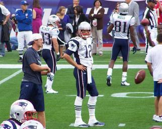 | Keywords: Welker-Brady-Moss.jpg en Tom Brady with Wes Welker and Randy Moss in the background own Denis Laflamme 2010-09-12 Blue clothing male Gillette Stadium Number 81 on sportswear Males with baseball caps Males with gloves Males with helmets Men facing right and looking at viewer Men wearing shorts Randy Moss September 2010 in the United States Sportspeople in 2010 Standing men Tom Brady Number 12 on sportswear September 2010 in Massachusetts 2010 New England Patriots season Wes Welker White clothing male 12 September |