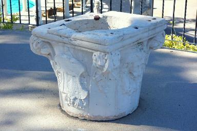 Keywords: Well head, Istrian stone with acanthus leaf supports, heraldic shields, and lion heads - Hearst Castle - DSC06644.JPG en Artwork at Hearst Castle San Simeon California USA Photograph was permitted without restriction in and around the castle All artwork is old enough so that it is in the public domain 2013-11-17 17 09 25 own Daderot other versions cc-zero Well heads at Hearst Castle Uploaded with UploadWizard |