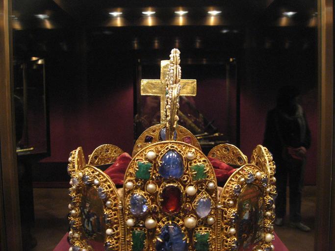 Keywords: Weltliche Schatzkammer Wien (178).JPG Die Reichskrone Westdeutsch 2 H 10 Jahrhundert; das Kronenkreuz einer Hinzufügung des frühen 11 Jahrhunderts; der Bügel aus der Zeit Kaiser Konrads II 1024-1039 ; die rote Samthaube aus dem 18 Jahrhundert Gold Email Zellenschmelz Edelsteine Perlen Stirnplatte H 14 9 cm B 11 2 cm ; Kronenkreuz H 9 9 cm SK Inv -Nr XIII 1 The Imperial Crown Western Germany 2nd half of the 10th century The cross is an addition from the early 11th century; the arch dates from the reign of Emperor Conrad II ruled 1024-1039 ; the red velvet cap is from the 18th century Gold cloisonné enamel precious stones pearls Brow plate H 14 9 cm W 11 2 cm; cross H 9 9 cm SK Inv No XIII 1 Own 2007-10 MyName Gryffindor 100px 100px 100px part of panorama Weltliche_Schatzkammer_Wien_ P02 jpg Secular and Ecclesiastical Treasury |