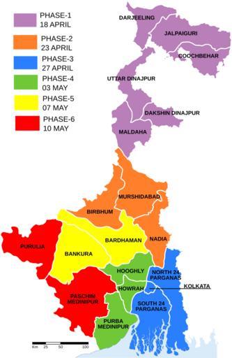 Keywords: West Bengal Election 2011.svg West Bengal Election 2011 Phase map File WestBengalDistricts numbered svg for base map and phase reference from http //telegraphindia com/1110302/images/02zzspotbig jpg telegraph 2011-03-03 Jayanta Nath File WestBengalDistricts numbered svg Election maps of West Bengal Cc-zero |