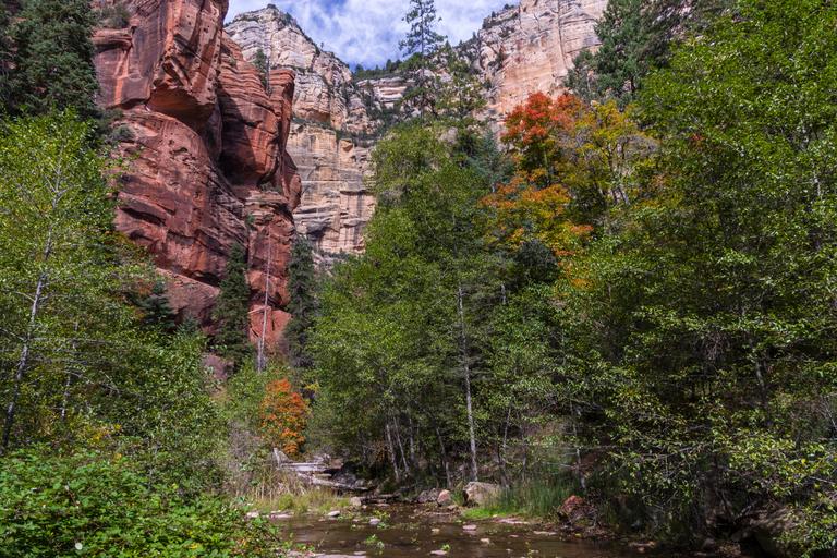 MAKE A MEME View Large Image The brilliant red, orange, and yellows of changing maple leaves mark the start of fall color in the West Fork of Oak Creek Canyon, October 12, 2016. There are a number of reasons why West Fork is one of the most popular trails on the ...
