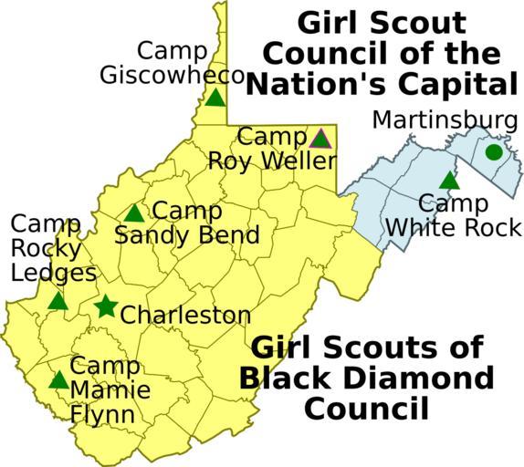 | Keywords: West virginia-gsusa.svg Girl Scout Councils in West Virginia<br/> Category Girl Scouts of the USA Council maps Transferred from http //en wikipedia org en wikipedia; transferred to Commons by User Magnus Manske using http //tools wikimedia de/~magnus/commonshelper php CommonsHelper <br/> Original text my work based on wikipedia county maps 2009 06 16 <br/> 2009 06 16 first version ; 2010 01 04 last version Emma Pease<br>Original uploader was Emma Pease at http //en wikipedia org en wikipedia Released into the public domain by the author en wikipedia Erp Original upload log page en wikipedia West_virginia-gsusa svg 2010-01-04 00 13 Erp 4270×3810× 244459 bytes <nowiki>Showed merger of Shawnee to Nation's Capital council</nowiki> 2009-06-24 16 42 Erp 4270×3810× 243559 bytes <nowiki>typo</nowiki> 2009-06-16 23 40 Erp 4270×3810× 243558 bytes <nowiki>slight problem with inkscape saving plain</nowiki> 2009-06-16 23 38 Erp 4270×3810× 133564 bytes <nowiki> Girl Scout Councils in West Virginia my work based on wikipedia county maps 2009-06-16 Emma Pease </nowiki> Girl Scouts of the USA Council maps Scouting in West Virginia |