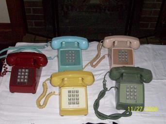 | Keywords: Western Electric 2500.jpg en Western Electric model 2500 telephones in a variety of colors Own Изогиз 2008-11-27 Sorry I couldn't find my black one The yellow one is not modular and has a type 72 keypad the rest are modular and have the type 35 keypad Beige telephones Blue telephones Green telephones Red telephones Yellow telephones Western Electric push-button telephones |
