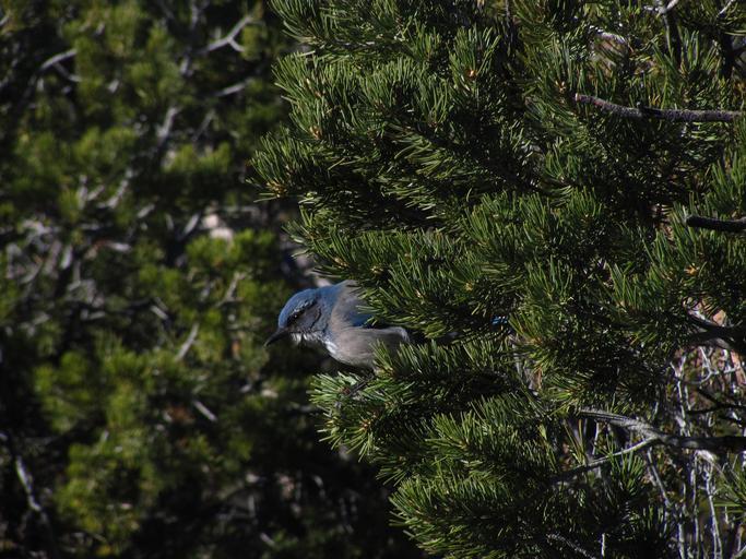 Keywords: western scrub-jay bird grand canyon blue jay tree scrub-jay male hiding pinyon pine pine tree pine sitting grey green aphelocoma californica