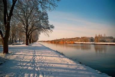Keywords: westphalia germany landscape winter snow ice trees forest woods river water reflections nature outside country countryside scenic