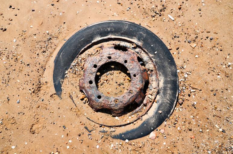Keywords: wheel an old tire car tires rim transport rusty wheel rust sand beach beach wheel truck worn wheel