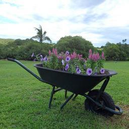 Keywords: wheel barrow old garden flowers broken wheelbarrow colorful cottage country farm gardening grass green nature outdoors pink rural rustic scene scenic season lawn blue sky sun light scenery environment blue day weather plant