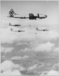 Keywords: When members of the United Nations Forces moved north over the 38th Parallel into the well-known industrial cities... - NARA - 542199.tif Scope and content When members of the United Nations Forces moved north over the 38th Parallel into the well-known industrial cities they found gutted buildings and mounds of twisted steel that were formerly vital to Communistic Korea's military forces Targets such as the large marshalling yards of Pyongyang the oil refinery at Wonsan and the key Kan-ni Arsenal near Pyongyang are evidence of the efforts put forth by the U S Air Force B-29s flying the long air miles from bases in Japan and Okinawa Upon request from the United Nations bombardiers of the huge bombers paid close attention to pin-pointed military targets and left surrounding civilian homes and business sections almost untouched B-29s of the U S Air Force drop their 500-pound bombs on a strategic target in North Korea These planes have devastated enemy North Korean supply lines industrial areas and troop concentrations with their precision bombing General notes 542199 Local identifier 342-AF-77472AC Department of Defense Department of the Air Force 09/26/1947 - Still Picture Records Section Special Media Archives Services Division NWCS-S National Archives at College Park 8601 Adelphi Road College Park MD 20740-6001 ca date 1950 09 13 Record group Record Group 342 Records of U S Air Force Commands Activities and Organizations 1900 - 2003 Record group ARC 654 Black and White Photographs of U S Air Force and Predecessors' Activities Facilities and Personnel Domestic and Foreign compiled 1930 - 1975 documenting the period 1863 - 1975 Series ARC 542185 File unit File unit ARC Variant control numbers Agency-Assigned Identifier NASM 4A 38425<br /> NAIL Control Number NWDNS-342-AF-77472AC yes Other versions NARA-cooperation PD-USGov 1950 in Korea Bombing during the Korean War B-29s in the Korean War History of the United Nations |