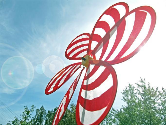 MAKE A MEME View Large Image whirligig pinwheel spinner windmill wind big plaything good fan propeller weather fine weather toy rotation rotator wind driven sunny vanes fans sunlight sunshine sun summer day blue sky soft fabric woven simple red and white motion morning ...