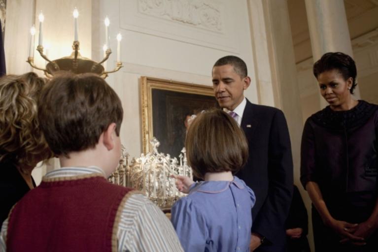 | Keywords: White House Hanukkah 2009.jpg  en Official White House photo of 2009 White House Hanukkah party President Barack Obama and First Lady Michelle Obama watch as a child lights the Hanukkah menorah http //www whitehouse gov/blog/2009/12/16/spirit-alone Samantha Appleton White House photographer 2009-12-16 None needed Official government White House photo Taken from official white house government site White House blog where photo is labeled as official White House photo taken by Samantha Appleton retrieved May 23 2010 for article White House Hanukkah Party Unknown PD-USGov White House in 2009 Presidents of the United States in Hanukkah celebrations People lighting a Hanukiah |