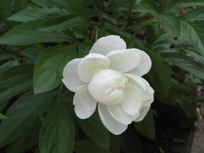 Keywords: White Peony Blossom.jpg en An unidentified white peony blossom own ChickenFreak Unidentified Paeonia lactiflora cultivars White flowers Plants in May