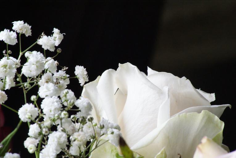 Keywords: white rose tenderness contrast black background wedding purity small flowers