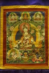 Keywords: White Tara, Tibet, 1644-1911 AD - Sichuan Provincial Museum - Chengdu, China - DSC04498.jpg en Exhibit in the Sichuan Provincial Museum 四 博物院 also known as the Sichuan Museum 251 Huanhua S Road Chengdu Sichuan China Photography was permitted in the museum without restriction This work is old enough so that it is in the public domain 2015-09-24 02 34 45 own Daderot other versions PD-old-100 cc-zero Thangka in the Sichuan Provincial Museum White Tara |
