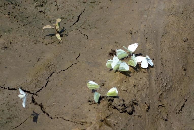 Keywords: white thirsty flight nature ground desert mud butterflies