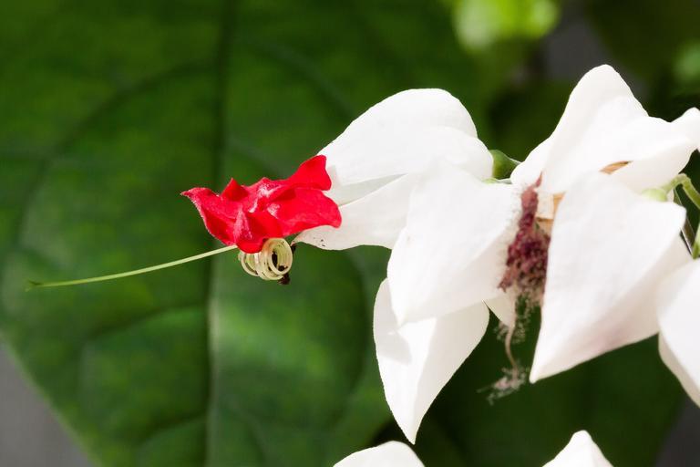 Keywords: whorled thomsoniae flowers ornamental plant petal red cup white tropics africa macro