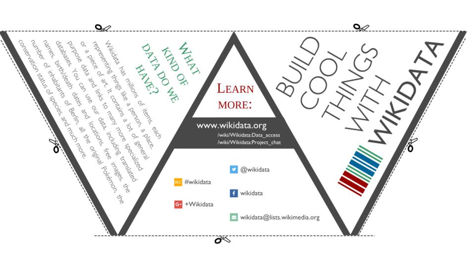 | Keywords: Wikidata Flyer for Developers Part 2of2 (OUTSIDE).svg en This is part 2/2 of the Wikidata flyer for developers There is a first part to this called -Wikidata Flyer for Developers Part 1/2 INSIDE - When printing choose 'short edge flip' It's a bit hacky with the white boxes but Scribus doesn't have an option to erase pixels If you know how to improve it feel free to do so or let me know how to fix it 2016-07-13 own Charlie Kritschmar WMDE other versions cc-zero Wikidata Wikidata information materials |