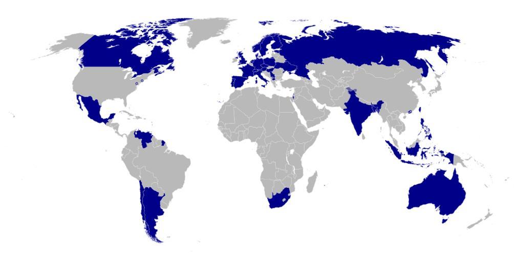 | Keywords: Wikimedia affiliates Wikimania 2012.svg en Map of all recognised Wikimedia chapters blue and Wikimedia user groups with a regional focus green according to m Wikimedia_user_groups and m Wikimedia chapters as per Wikimania 2012 first day of main conference The official recognition date was used for chapters this is the WMF Board of Trustees resolution date for User Groups this is the Affiliations Committee resolution date Chapters that were approved but never officially founded are not included 2015-08-30 own Effeietsanders other versions cc-zero Maps of Wikimedia affiliates Uploaded with UploadWizard |