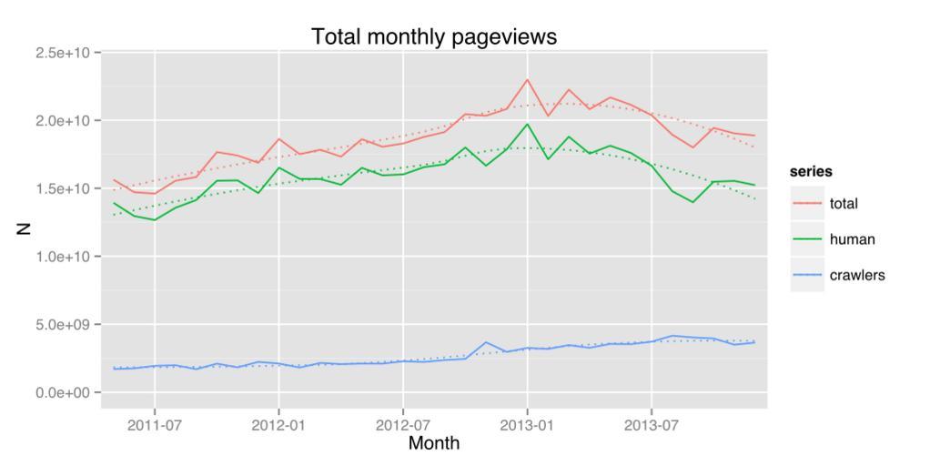 Keywords: Wikimedia crawler requests vs total pageviews.svg en Crawler requests vs total pageviews for Wikimedia sites 2014-01-27 16 10 23 own DarTar cc-zero Uploaded with UploadWizard Wikipedia statistics