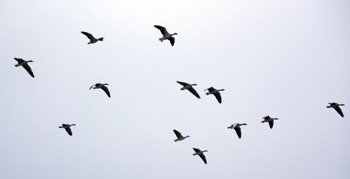 Keywords: wild geese migratory birds geese flock of birds swarm fly formation birds sky