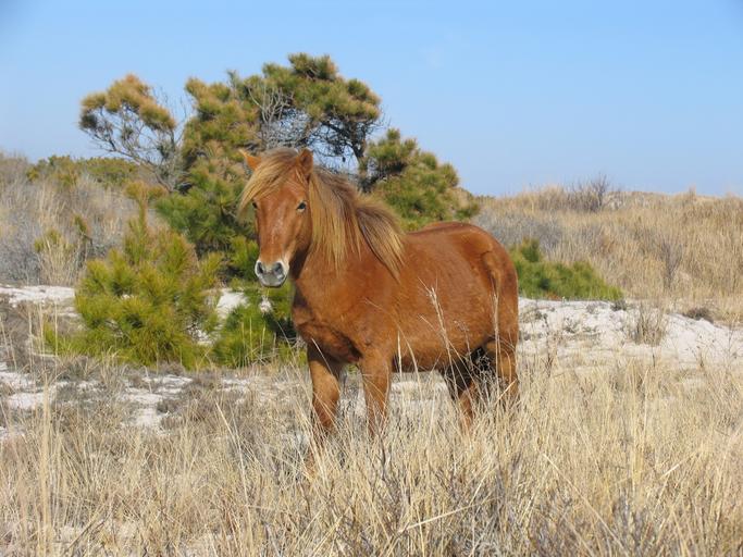 Keywords: wild pony grazing feral pony chincoteague island virginia usa nature small wildlife prairie portrait looking