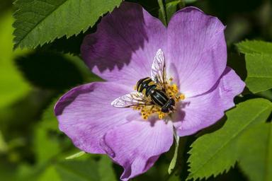 Keywords: wild rose bee flower insect wildlife nature pollen bloom blossom plant nectar macro