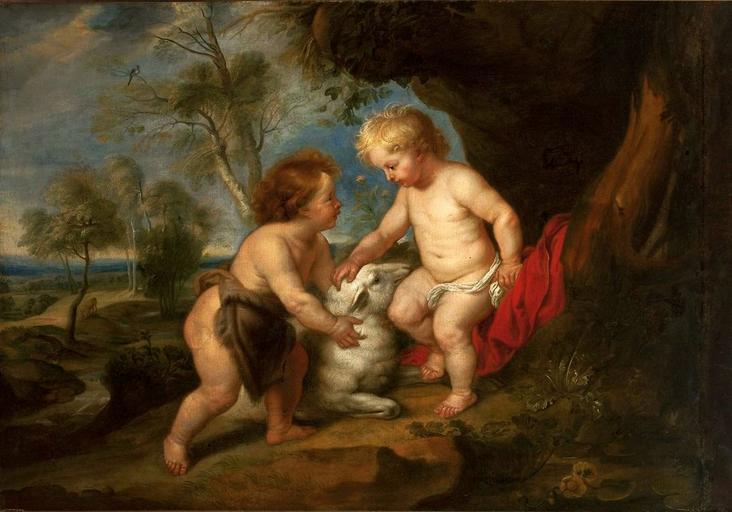 | Keywords: Wildens Infant Christ and St. John.jpg Artwork Creator Jan Wildens after > 1615 oil canvas cm 82 118 Institution National Museum Warsaw Not on view accession number 158040 object history ProvenanceEvent 1951 purchase National Museum in Warsaw credit line Rubens' prime version of this composition known as The Spinola Rubens dates of 1615 and this work appears to be a contemporary copy by artist's workshop Jan Białostocki Maria Murdzeńska Danuta Książkiewicz Jan Kuglin 1970 Catalogue of paintings foreign schools Vol 2 National Museum in Warsaw cat no 1450 p 194 own BurgererSF See below PD-old-100 DEFAULTSORT 1615 after; Infant Christ and St John Jan Wildens 17th-century paintings in the National Museum in Warsaw Baroque paintings in the National Museum in Warsaw Flemish paintings in the National Museum in Warsaw Baroque paintings of children Life of Saint John the Baptist 17th-century paintings of John the Baptist 17th-century paintings of Jesus Christ People with sheep in art Paintings of boys with animals |