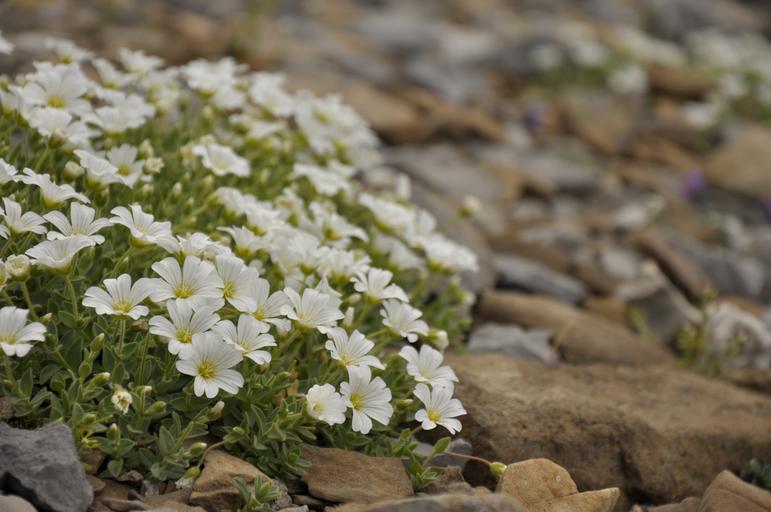 Keywords: wildflower flower white blooming nature gravel stones