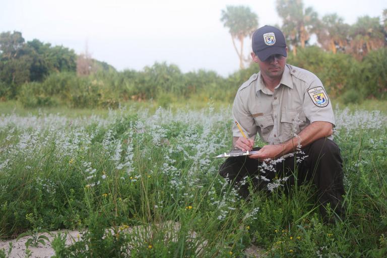 | Keywords: florida gopher tortoise gophertortoise survey employee pelican island pelicanisland outdoor U.S. Fish and Wildlife Service biologist Andrew Eastwick conducts a gopher tortoise survey on Pelican Island National Wildlife Refuge in Florida. We are working proactively with our state, local, and nonprofit partners to take steps to conserve these species in order to prevent the need for listing. Learn more at www.fws.gov/southeast/candidateconservation/ Photo by Kevin Lowry, USFWS. U.S. Fish and Wildlife Service biologist Andrew Eastwick conducts a gopher tortoise survey on Pelican Island National Wildlife Refuge in Florida. We are working proactively with our state, local, and nonprofit partners to take steps to conserve these species in order to prevent the need for listing. Learn more at www.fws.gov/southeast/candidateconservation/ Photo by Kevin Lowry, USFWS. |