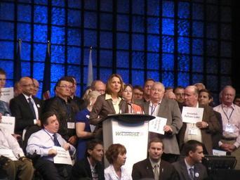 Keywords: Wildrose AGM 2010.JPG Danielle Smith addressing attendees of the provincial party's 2010 Annual General Meeting on the afternoon of Saturday June 26 in Red Deer Alberta Sitting in front is the party's 4 member caucus from left to right Guy Boutilier Heather Forsyth Paul Hinman and Rob Anderson On the far right wearing a pink shirt is party president Hal Walker The other people on the platform are constituency association presidents from around the province own Brian Dell Bdell555 2010-06-26 Provincial politicians of Alberta Taken with Sanyo Xacti VPC-CS1 Wildrose Alliance Party of Alberta Danielle Smith 2010 in Alberta June 2010 in Canada 2010 in politics of Canada |