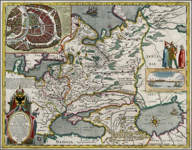 | Keywords: Willem Janszoon Blaeu. Tabula Russiae ex autographo, quod delineandum curavit Foedor filius Tzaris Borois desumta. MDCXIIII.jpg en Willem Janszoon Blaeu Tabula Russiae ex autographo quod delineandum curavit Foedor filius Tzaris Borois desumta ¦ MDCXIIII<br /> A gorgeous example of Hessel Gerritsz's map of Russia with the large inset of Moscow and plan of Archangelsckagoroda Hessel Gerritsz's map of Russia first issued 1613 was published by Blaeu after he acquired the plate following Gerritsz's death in 1632 The top left corner has an inset plan of Moscow with a 17-point key On the right is a prospect of Archangel Russia's only northern port until the founding of St Petersburg in 1700 Three figures in Russian dress stand above The title is within a martial cartouche The map was compiled from manuscript maps and work brought back by Isaac Massa The inset plan of Moscow has been attributed to the Crown Prince Fydor Gudonov https //www raremaps com/gallery/detail/23941/Tabula_Russiae_ex_autographo_quod_delineandum_curavit_Foedor_filius_Tzaris/Blaeu html www raremaps com ca 1635 Creator Willem Janszoon Blaeu <gallery> File Willem Janszoon Blaeu Tabula Russiae ex autographo quod delineandum curavit Foedor filius Tzaris Borois desumta MDCXIIII A jpg File Willem Janszoon Blaeu Tabula Russiae ex autographo quod delineandum curavit Foedor filius Tzaris Borois desumta MDCXIIII B jpg File Willem Janszoon Blaeu Tabula Russiae ex autographo quod delineandum curavit Foedor filius Tzaris Borois desumta MDCXIIII C jpg File Willem Janszoon Blaeu Tabula Russiae ex autographo quod delineandum curavit Foedor filius Tzaris Borois desumta MDCXIIII D jpg File Willem Janszoon Blaeu Tabula Russiae ex autographo quod delineandum curavit Foedor filius Tzaris Borois desumta MDCXIIII E jpg File Willem Janszoon Blaeu Tabula Russiae ex autographo quod delineandum curavit Foedor filius Tzaris Borois desumta MDCXIIII F jpg File Willem Janszoon Blaeu Tabula Russiae ex autographo quod delineandum curavit Foedor filius Tzaris Borois desumta MDCXIIII G jpg File Willem Janszoon Blaeu Tabula Russiae ex autographo quod delineandum curavit Foedor filius Tzaris Borois desumta MDCXIIII H jpg </gallery> PD-Art-100 Maps by Willem and Johannes Blaeu 1635 maps Old maps of the Caucasus Old maps of Tsardom of Russia Old maps of Ukraine Ships on maps 17th-century maps of Azerbaijan |